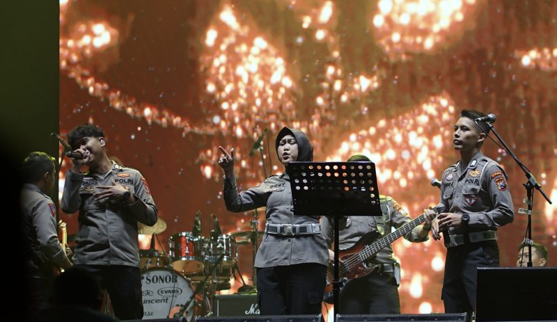 Usai membawakan lagu “Sialan”, Semeru Police Band menyuguhkan genre dangdut yang diaransemen jazz secara beruntun. Mulai dari Rungkad, Dumes, Layang Kangen, Kartonyono, hingga Sigar.